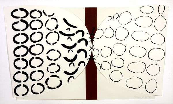 Lourdes Castro created ‘Ananas Tropical’ with paint and collage. Castro, born in Madeira, Portugal, spent much of her career in Paris, where she developed her distinctive shadow portraits. Here, the pineapple, a symbol of the tropics and exoticism, is rendered as a delicate white outline, in contrast to the solid black silhouettes of other fruits. This juxtaposition invites us to consider themes of visibility and absence, presence and erasure. What does it mean to represent the 'tropical' as an outline, a mere suggestion of form? Castro's work often explores the interplay between light and shadow, challenging conventional notions of representation. Through her innovative use of collage, she blurs the boundaries between object and image, reality and illusion. 'Ananas Tropical' is both visually striking and conceptually rich, offering a meditation on the complexities of identity, representation, and the enduring legacy of colonialism.