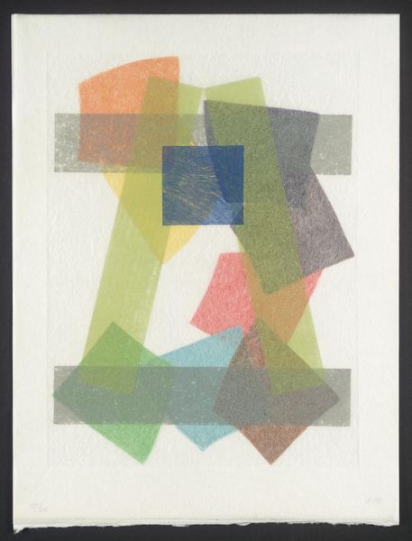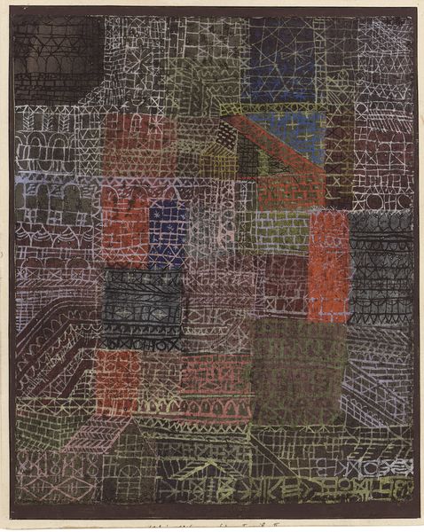 Curator: Here we have "Ontwerp voor een tapijt met geometrisch patroon", a carpet design from circa 1923-1925 by Dirk Verstraten, primarily executed in watercolor. My immediate impression is its almost digital aesthetic, even though it predates computers! Editor: That's interesting. I’m struck by the integration of process here, literally with the sample of textile colors on the side. It provides vital context—the designer’s hand, the tangible origins of the intended woven artwork. We often forget the labour involved when focusing on the final "art" object. Curator: Yes, but notice the composition! The geometric patterns, those almost pixelated edges, create a powerful visual rhythm. And the interplay of light and shadow—it’s sophisticated. There is careful control within the constraints of its abstraction. Editor: Control, perhaps, but to what end? Look closer at those pastel colors, they're anything but assertive, they mute a forceful statement. Are we celebrating abstract form divorced from its social usefulness as something trod underfoot daily? Isn't function equally significant as form in judging this artwork’s success or failure? Curator: Fair point about utility, however I appreciate the dialogue between fine art and applied design the work provokes, wouldn't you agree it is powerful given the date it was created? Consider the context – Art Deco was exploding then! There is even an underlying sense of classical proportions amidst all that geometric abstraction! Editor: I’m still drawn to those color swatches; for me, they foreground the labour and materiality inherently crucial yet so frequently overlooked if we center on formal beauty alone. Where was it made? Who would have woven this? These production factors matter, informing and complicating simplistic aesthetics judgements Curator: I admit considering the end product as a marker of success of production introduces fascinating implications, especially concerning how social stratification impacts who profits. Editor: Precisely, making this more than mere aesthetics—this invites analysis into consumerism! Curator: Quite illuminating how this aesthetic design also encapsulates social questions relevant today. Editor: Yes, it challenges how "art" often conveniently detaches from labor and social context it springs from!