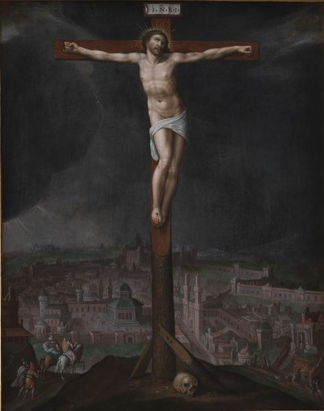 Michelangelo painted this “Crucifixion” with oil on panel. Oil painting was relatively new at this time, having been refined in the preceding century. The qualities of oil, unlike fresco or tempera, allowed Michelangelo extended time to work, and to build up layers of color and tone. See how he uses chiaroscuro, the contrast of light and dark, to create drama and emphasize the suffering of Christ. Oil paint is a versatile medium that allows the artist to achieve a high level of detail and realism. Note how he models the musculature of Jesus: his deep understanding of anatomy clearly came from his experience as a sculptor. Think of the labor involved in sourcing and preparing the materials: grinding pigments, mixing the oil, preparing the panel. Michelangelo's mastery of oil painting elevated it to a high art form. By understanding the materials and techniques used, we can appreciate the skill and artistry involved in creating this powerful image.