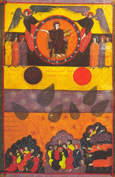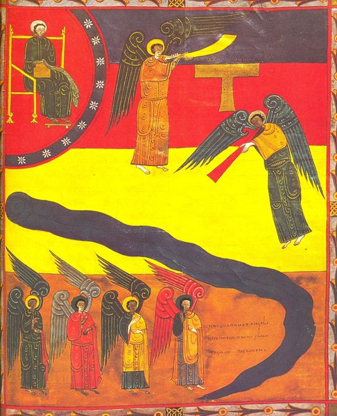 Facundus painted "The 144,000 Chosen Ones and the Angels Restraining the Winds" in the 11th century. Here, we see celestial beings holding back the winds at the four corners of the earth, a powerful symbol of divine control over nature's chaotic forces. Above them, the chosen ones stand in orderly rows, awaiting judgment. This motif of restraining the winds is ancient, appearing in various forms across cultures, from Greek mythology with Aeolus, the keeper of the winds, to similar figures in ancient Egyptian and Mesopotamian art. The act of binding or restraining, prevalent in magical and religious practices, represents humanity's attempt to control uncontrollable forces, such as fate and destiny. These images tap into our collective memory, embodying the perennial human desire to impose order on chaos. Just as in ancient rituals, this image serves as both a protective measure and a powerful reminder of forces beyond our control. The cyclical progression and evolution of these images highlight the continuous human dialogue with the unseen, re-emerging through time.