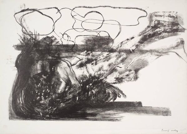 Editor: Here we have Chu Teh-Chun’s "Untitled" painting from 1963, created with ink. The misty grays evoke a somber mood; I'm particularly struck by the contrast between the almost chaotic foreground and the smooth, blurred background. How do you interpret this work, given the socio-political context of its creation? Curator: It’s interesting that you highlight that contrast. Consider that this was made during a period of immense upheaval in China. While Chu Teh-Chun lived in Paris by then, his artistic vocabulary—the very act of using ink—positions him in a direct conversation with his cultural heritage, even as he embraced abstraction. How do you see the influence of his identity in this landscape? Editor: Well, the swirling, energetic strokes remind me of traditional Chinese calligraphy, but the lack of clear, defined forms feels like a deliberate break from tradition. It feels almost like a negotiation of his identity in a globalized world. Curator: Precisely! It’s a dance between belonging and resisting, a visual manifestation of cultural hybridity. Consider, too, the absence of people. What does it say about belonging, community, and perhaps even displacement in a period of rapid change and immense social restructuring? How can we see this artistic process in relationship to contemporary philosophical dialogues? Editor: The absence definitely adds to the feeling of isolation. Looking at it through that lens makes the abstract shapes feel like they're burdened by something… almost representing uprooted lives. Curator: Exactly! Perhaps this painting offers more than a landscape; it’s a subtle commentary on the universal experiences of migration, cultural identity, and the search for belonging. What a powerful visual reflection on individual identity! Editor: That's a compelling point. It makes me see the painting as both a personal and political statement, rather than just a formal experiment in abstraction. Curator: Absolutely! Art exists within—and speaks to—the world. The connection here provides a deeper meaning.