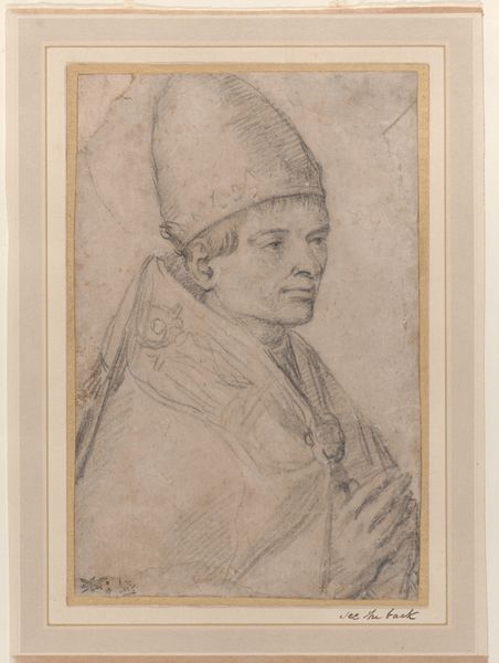 Curator: Up next is Dankvart Dreyer's "Hovedet af biskop Absalon," or "Head of Bishop Absalon," created in 1851. It’s a pencil drawing, currently held here at the SMK. Editor: There’s a haunting delicacy to this piece. It feels less like a definitive portrait and more like a fleeting impression, as if the artist just caught a glimpse of this figure. Curator: Dreyer’s work, especially his drawings, shows his intense engagement with the Romantic movement. I’m fascinated by how the artist achieves such nuance with simple pencil strokes, really allowing the texture of the paper to contribute to the image. You can almost feel the artist's hand at work. Editor: The subject is interesting too. Absalon was such a central figure in Danish history, a warrior bishop, but Dreyer seems more interested in capturing the humanity of the man beneath the title. His eyes almost look weary, questioning perhaps. Is Dreyer hinting at the weight of power and religious authority on an individual? Curator: That’s an astute reading, connecting it to a larger social commentary. Consider how paper production at the time relied heavily on industrial processes that employed grueling labor conditions, reflecting a broader class divide. It's intriguing how such a fine drawing could emerge from this system. Editor: Absolutely. It's not just about aesthetic value but acknowledging the complex, sometimes fraught, socioeconomic circumstances of its creation. Considering the church’s role during Absalon’s time, and later artistic interpretations, I wonder about the choices that Dreyer had to make in choosing to humanize a powerful figure. Did it affect who could be included in that process? Curator: These social concerns undoubtedly impacted who could access art-making resources. In conclusion, it urges us to look deeper. Editor: It shows that representation, whether historical or contemporary, can never be politically neutral.