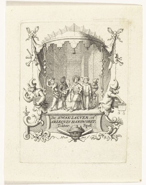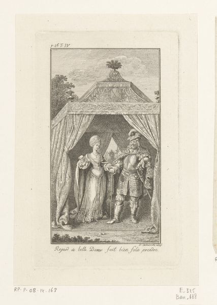This print, made by Jan Kobell I around the turn of the 19th century, depicts an event from the 15th century when Pieter Beoostenzween van Renesse presented a registry of privileges to Philip, Duke of Burgundy. The image presents itself in a medieval style, framed by a decorative border reminiscent of illuminated manuscripts, a conscious choice by Kobell to engage with and perhaps even revive a sense of national history. The scene captures a moment of submission and negotiation, reflected in the kneeling figure offering a document, presumably outlining rights and customs, to the enthroned Duke. The surrounding figures, with their heraldic emblems, underscore the importance of lineage and power in this historical tableau. Considering the print was made during a time of national self-discovery, we can see how institutions have shaped artistic production. Understanding the socio-political context requires delving into archives and historical accounts. Only then can we appreciate the role of this image in shaping Dutch cultural identity.