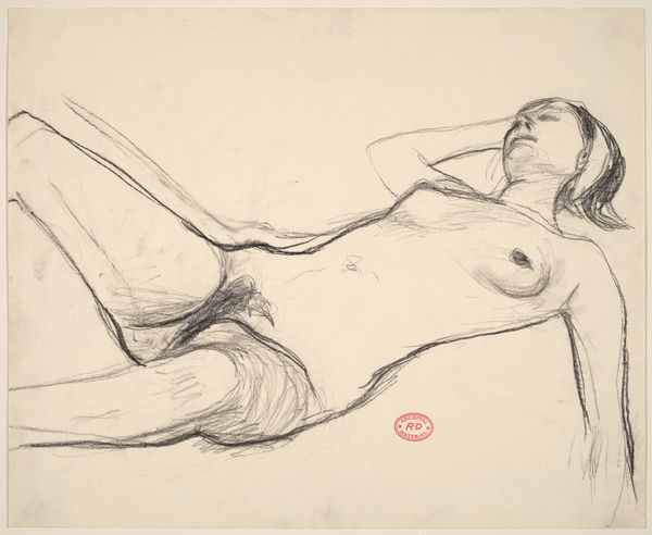 This is an untitled drawing of a reclining nude, made with charcoal on paper by Richard Diebenkorn. Look at the immediacy of the charcoal line, so expressive! The line is bold and confident, but also tentative, searching. You can almost feel Diebenkorn working and reworking the image, trying to capture the weight and form of the model. See how the charcoal is smudged in places, creating soft shadows and a sense of depth. Notice how the darkest lines define the contours of the figure, while lighter lines suggest the planes and curves of the body. This drawing reminds me of Matisse, in the way it balances abstraction and representation. Like Matisse, Diebenkorn reduces the figure to its essential forms, but still manages to convey a sense of sensuality and presence. Ultimately, it's a beautiful example of how a simple medium like charcoal can be used to create a complex and compelling work of art.