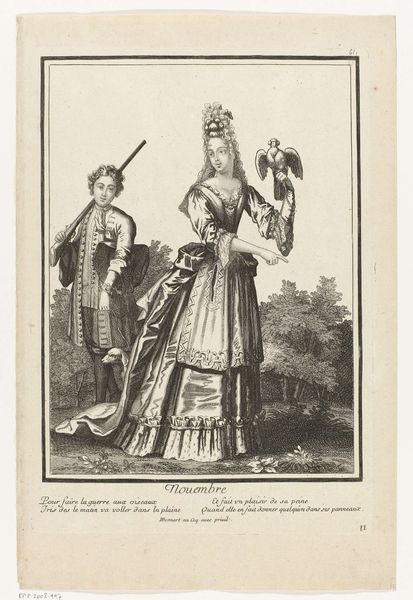Curator: Victor Adam's pencil drawing, "Soldier with a woman on his arm," estimated from 1820 to 1866, offers a fascinating glimpse into... well, what are your first impressions? Editor: It feels satirical, almost mocking. There's such a disparity between the figures. The woman is rendered with almost exaggerated bulk and a decidedly self-satisfied air, while the soldier... his mustache is fierce, but the tiny feet seem a bit deflated by his position. Curator: I agree about the satirical edge, and it's vital to situate this piece within the sociopolitical landscape of 19th-century Europe. The Napoleonic Wars had recently reshaped the continent. Gender roles were intensely scrutinized. Victor Adam likely comments on shifting power dynamics and ideals through such figures. Editor: Exactly, situating this within evolving narratives! Is this commenting on performative masculinity? Is it exploring class aspirations through their body language? And who are they? Is the power imbalance reflected in their embrace representative of post-war French society? The composition certainly sparks more questions than it answers. Curator: Right, but beyond conjecture, understanding Adam's influences as a lithographer sheds light on his technical approach. Notice the cross-hatching that gives a tactile weight to their clothes. The precision used when rendering the details of the uniform next to the relatively less defined shapes that outline the woman is indeed compelling. It almost highlights them as social constructs and exposes tensions between expectation and experience. Editor: So you’re suggesting it is less about literal representation and more about representing established, though possibly fragile social categories. The artwork then gains increased relevance when displayed in public, creating critical discussions that resonate even today. Curator: Precisely. We need a comprehensive discussion on the function of political caricatures. It invites dialogue on who has historically benefited from visual tropes. I hope viewers will understand it as a commentary on military structures. It also reflects historical trends, not a timeless scene. Editor: Well, for me, this drawing underscores how art possesses the potential to reflect gender dynamics. It also touches on the performativity of social hierarchies. Curator: And for me, it's how Adam makes visible through accessible mediums like prints or drawing the societal forces at play during his time. I hope the public enjoys learning through images from history!