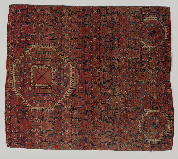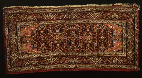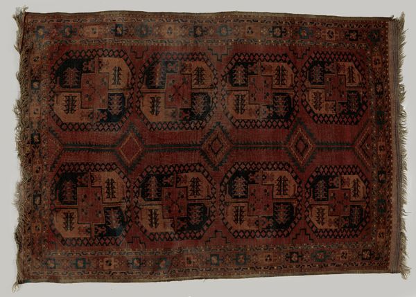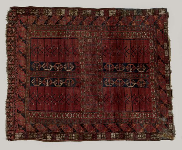 This Oriental carpet was created by the Ersari people. It is 170 cm high and 105 cm wide. Observe how the red and black hues create a rich, contrasting field. The repeating motifs, rendered in geometric forms, establish a structured yet dynamic visual rhythm. The composition emphasizes symmetry and balance, which are central to its aesthetic appeal. This structured arrangement invites us to consider semiotic systems at play. Each symbol, carefully woven, functions as a sign within a complex cultural language, reflecting codified beliefs and values. The carpet’s texture and materiality offer further insight. The tactile quality of the woven fibers adds depth, creating a sensory experience that moves beyond the visual. The carpet challenges fixed notions of space, blending utility with profound symbolic expression. Ultimately, the carpet’s formal qualities serve not only as aesthetic elements but also as a medium for cultural and philosophical narratives. Appreciate how its ongoing interpretation and re-interpretation keep it relevant.