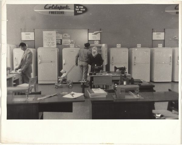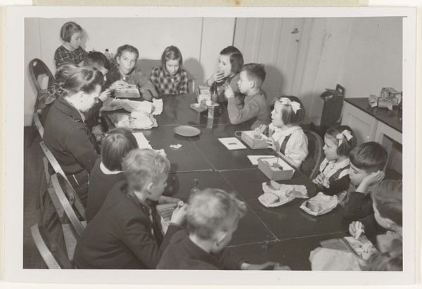 Editor: Here we have Robert Frank's "Coffee shop counter--Houston, Texas" from 1955, a gelatin silver print. There’s a quiet, almost melancholic feeling about it. I'm drawn to the stark contrast between the youthful couple and the server in the background. What do you see in this piece, something beyond the surface, perhaps? Curator: Ah, yes. This photograph, to me, whispers stories of America in the mid-20th century. Look at the way Frank frames the scene. The young couple, seemingly lost in their own world, juxtaposed against the African American server, creating a visual divide that reflects the social realities of the time. What do you make of their gazes? Editor: The couple seems so disengaged, almost somber. And the server has this weariness... Are you suggesting Frank is commenting on racial segregation and class differences? Curator: Precisely. Frank wasn’t just capturing a moment; he was revealing underlying tensions. It's in the details: the pristine counter versus the unseen kitchen, the innocence of youth versus the burdens of labor. The contrast in the blacks and whites, very deliberate I suspect. Think of it as a poem, each element a carefully chosen word. Does that resonate? Editor: Definitely! It’s like the photograph is holding up a mirror to society, reflecting both its beauty and its ugliness. I initially saw it as just a snapshot, but now I appreciate its complexity. Curator: Isn’t it marvelous how a single image can contain so much? It’s like a pebble thrown into a pond; the ripples of meaning keep expanding. It shows how crucial perspective and experience shape our interaction with works like these. Editor: I’ll certainly view street photography differently from now on. Thanks for helping me unlock a deeper understanding!