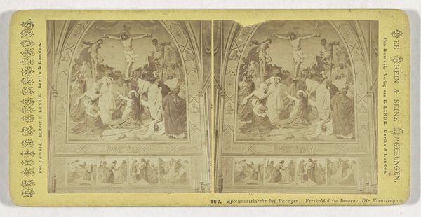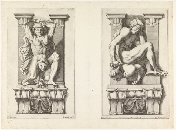 This is a photograph of a sculpture, likely from the late 19th century, depicting a group of figures on the Opéra Garnier in Paris. The composition is immediately striking, presenting a stark contrast between the figures and the architectural backdrop. The sculpture is arranged hierarchically, with a winged figure standing prominently at the center, holding a torch aloft, flanked by two smaller figures, while a prostrate figure lies beneath. This arrangement imposes a clear structure, where each element plays a distinct role in conveying symbolic meaning. The interplay of light and shadow accentuates the texture of the stone, lending the figures a sense of depth and volume. The photograph captures not just the sculpture's aesthetic qualities but also its structural implications within the larger architectural context. It invites us to consider how the sculpture embodies prevailing ideas about power, beauty, and civilization. The artwork functions as a dynamic interplay of form and content, continually reshaped by viewers and cultural contexts.
