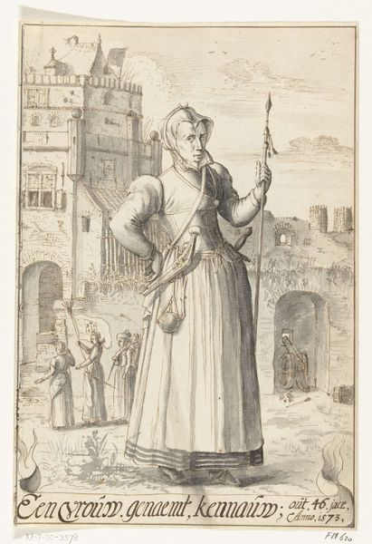 Curator: Benoît Audran the Younger's "The Spinner," found here at Harvard Art Museums, presents a woman in simple dress against a sweeping landscape. It's a print, measuring roughly 28 by 21 centimeters. Editor: The immediate impression is one of melancholy. The overcast sky and the woman's somewhat forlorn expression give it a somber mood, despite the pastoral setting. Curator: Considering the social history of the time, the act of spinning connects to labor and gender roles. The woman's engagement in this activity, set against a backdrop that could represent both possibility and limitation, speaks to the experience of working women. Editor: Absolutely. The spindle itself has layers of symbolism. It speaks of fate, of the threads of life spun by the Fates, but also of everyday toil. It brings to mind the archetypal figure of the spinner, a constant presence in myth and folklore. Curator: And the fact that this is a reproduction of a painting by Watteau brings in another layer of complexity. It's a mediation, a translation, reminding us that representations of labor are always filtered through a specific lens. Editor: It makes you wonder about the original context of Watteau's painting and how Audran’s print might shift or reinterpret its message. I find the continuity of those symbols incredibly compelling. Curator: It certainly highlights the power of images to both reflect and shape our understanding of the world. Editor: Precisely; it invites us to weave together our own interpretations.