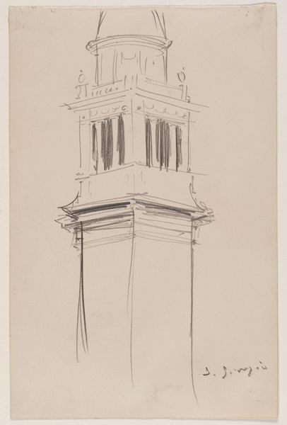 Cornelis Vreedenburgh made this drawing of the Montelbaanstoren in Amsterdam using pen and ink on paper. Vreedenburgh's choice of materials and technique—pen and ink—is notable for its directness. Unlike the layered, painstaking processes of oil painting, ink drawings prioritize spontaneity. Look closely, and you can sense the quick, decisive movements of Vreedenburgh's hand, capturing the tower's architectural form with a mix of precision and gestural energy. The ink lines vary in weight and density, which suggests an immediacy in capturing the tower. The paper's texture also plays a role, interacting with the ink to create subtle variations in tone and texture, enlivening the surface of the drawing. The drawing speaks to a social context where rapid urbanization and industrialization were reshaping cities. Artists like Vreedenburgh documented these changes, but also remind us of the human labor involved in constructing and maintaining these urban landmarks. Appreciating the material qualities of this drawing allows us to see it not just as a representation of a building, but as an index of the artist's engagement with the built environment.