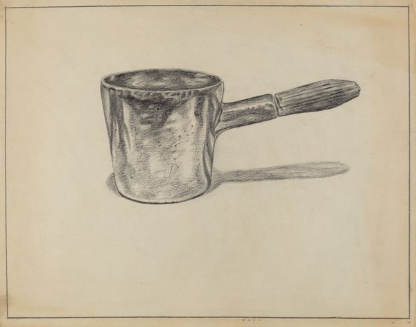 Editor: We're looking at "Iron Pot," a 1936 pencil drawing by J. Howard Iams. It’s a rather simple, realistic depiction. I’m struck by how much care the artist took in rendering what is, essentially, just an ordinary pot. What historical or cultural context can you bring to this work? Curator: Well, let’s think about 1936. This drawing was created during the Great Depression. Artists, often supported by the WPA, were encouraged to document American life. This drawing, then, transforms a common household object into a subject worthy of artistic attention, echoing a democratic impulse within the art world. Editor: So, you’re saying it’s about more than just depicting a pot, but about celebrating everyday objects? Curator: Precisely. Art shifted toward representing ordinary people and things. Before that, historical paintings or portraits of the elite were much more valued, especially by the academic establishment. But you still have to wonder: who was the audience? Was this meant to be displayed, and if so, where? How would it be viewed? Editor: That makes me consider how something as functional as an iron pot also suggests a history of domestic labor. Does the drawing itself say anything about how such labor was then perceived? Curator: That’s a fascinating point. Does the precise realism, almost bordering on clinical detachment, suggest something about the artist's or society's relationship to that labor? Or perhaps about his subject’s role, or that of such still-life artworks, within American art? We can only speculate, but those speculations help illuminate the context of its making and viewing. Editor: It’s interesting to consider the artwork in relation to its historical time and the art that was prevalent during that time, something so simple actually conveys so much. Curator: Absolutely. It reminds us that art always participates in larger cultural conversations, and the simplest objects can be powerful documents.
