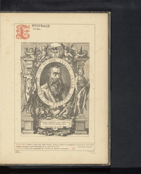 Curator: This artwork presents a reproduction of an engraving dating from before 1880, depicting "The Death of Mary." It's attributed to Johannes Sadeler, after Maerten de Vos. Editor: The dense, dark lines and compact composition immediately strike me. It feels intensely somber and detailed. I am curious about its social purpose. Curator: From a formal perspective, notice how Sadeler utilizes contrasting tones to create depth within a relatively flat plane. The almost overwhelming ornamentation of floral motifs framing the scene directs the eye toward the central figures clustered around the Virgin. The use of line and form is meant to emphasize certain figures over others, giving more detail and light to those considered central, but it may distract viewers from fully engaging with secondary figures or from observing the details around the Virgin. Editor: I agree, the emphasis creates an iconic focal point, but I’m more interested in the material processes involved in creating this reproduction. Engravings required meticulous skill, and reproducing such a piece would have been a labor-intensive endeavor, reflective of both technical expertise and broader economic networks within the printing industry at that time. What would be its availability to audiences, given the resources involved in creating it? What was the status of Sadeler himself? Curator: Certainly, there are layers to unpack in how this reproduction served a didactic purpose, and these processes matter as well. Sadeler's mastery of the burin is clear in the way the light seems to emanate from the scene—there is a subtle radiance at work—and consider too, that in an age before photographic reproduction, prints such as this helped circulate visual ideas related to spirituality. There is great power in that replicability of religious scenes. Editor: Yes, and that very circulation has social and political significance. Were they reaching only elite patrons? I find the material conditions and means of distributing these works just as compelling as its stylistic qualities and iconographic impact. What class did the laborers come from? How were they trained? The art and social value lie inextricably within these historical details of its creation. Curator: I acknowledge the value of material concerns; but in studying the history of this engraving’s forms, it is tempting to further investigate its aesthetic conversation between reproduction and original works. There is beauty to be found, too, in exploring the language of visual representation. Editor: Perhaps, and regardless of one's personal values, one has to reflect upon the cultural weight of materials to get the whole picture. Curator: Precisely, both analyses allow us new perspective on historical printmaking, even from a reproduction as seemingly straightforward as this one.