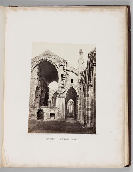 Editor: This is "Melrose Abbey," a photograph by Francis Frith. I’m struck by the imposing architecture and the obvious decay. What story does this image tell you? Curator: Frith’s work speaks volumes about the Victorian fascination with ruins, reflecting a romanticized view of history and empire. How do you think the public perceived these images of decaying grandeur? Editor: Perhaps as a reminder of mortality, or the fleeting nature of power? Curator: Precisely. Also consider how these images were circulated – often as affordable prints, shaping a shared visual culture and national identity. Editor: I see now how Frith's photographs played a role in shaping public perceptions. Curator: Indeed. It's fascinating how art can shape collective memory.