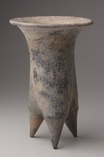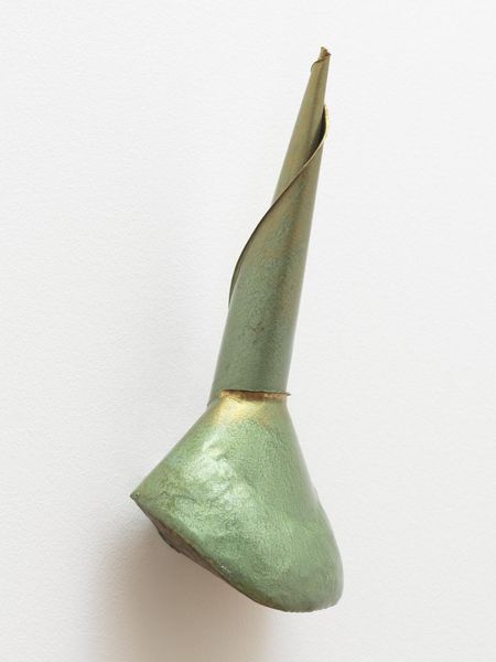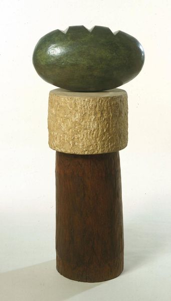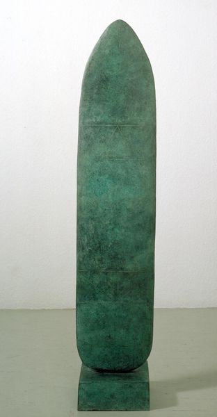 Curator: Standing before us is "Idol 4" by William Turnbull, a striking sculpture in the Tate collection. Editor: It has an imposing, almost primitive feel. The elongated form and the muted green color give it a sense of timelessness. Curator: Turnbull's interest in ancient forms, particularly Cycladic figures and tribal art, is evident here. The post-war context saw many artists seeking universal, archetypal forms. Editor: The title, "Idol," points to that interest in the primal and spiritual. I wonder about the politics of display, though. How do we avoid exoticizing or appropriating those cultural references? Curator: That's a critical question. The sculpture’s scale demands attention, forcing the viewer to confront its otherness. Editor: It’s a fascinating object, one that encourages us to think about art's relationship to history and culture. Curator: Indeed, a work that speaks volumes about the artist’s time and continues to provoke dialogue today.
