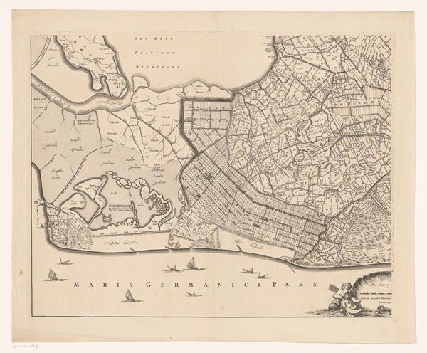 Jacobus Harrewijn created this print of Saint-Omer in 1710 using engraving, a painstaking process of cutting lines into a metal plate, inking it, and pressing it onto paper. The character of this map is defined by labor. First, by the labor required to build the fortifications, canals, and other features documented here. Then, by the labor of the draftsman who originally surveyed the landscape, and the engraver, Harrewijn, who translated it into reproducible form. The very intricacy of the lines, particularly those defining the architecture, demonstrate skilled handwork. The effect is technical, certainly, but also beautiful. Consider the social context. This was an era of constant territorial disputes, and maps were essential tools of power. Their accuracy was vital, but so too was their capacity to impress. The profusion of fine lines is almost a form of propaganda, communicating the might and sophistication of Saint-Omer. Ultimately, the convergence of craft, information, and strategic purpose demonstrates the significance of labor in shaping our understanding of the world.