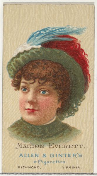 Allen & Ginter produced this lithograph card of Blanche Bennett as part of their "World's Beauties" series. The profile view, framed tightly, draws our eye to the texture and hue of her features. The artist's precise use of color and line seeks to capture an idealized beauty, revealing late 19th century beauty standards. Notice the contrasting textures: the smooth skin, the feathered hair, and the ruffled fabric, each rendered with meticulous detail. The palette is soft, dominated by pastel shades that enhance the subject's perceived purity and grace. Consider this card as a cultural artifact, existing as part of the consumer culture of its time. It reflects a semiotic system where beauty is a commodity, packaged and sold alongside cigarettes. The card is not merely a portrait but a sign, laden with cultural meanings about femininity and value. This commercial context invites us to reflect on how notions of beauty are constructed and circulated within society, creating an ongoing dialogue between art, commerce, and cultural values.
