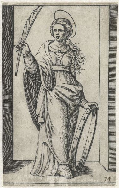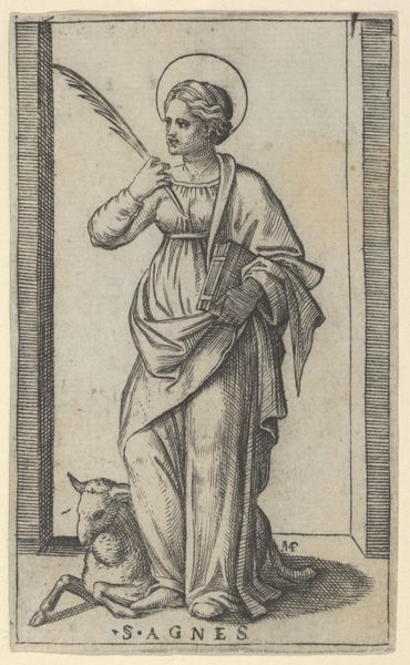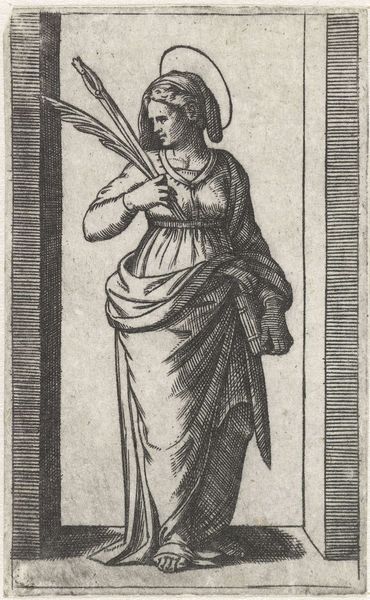 This print of Saint Cecilia was made by Marcantonio Raimondi, sometime between 1506 and 1516. It’s made using an engraving technique, where lines are incised into a metal plate, which is then inked and printed onto paper. Engraving was a highly skilled, labor-intensive process. The quality of the line is crucial. Look closely and you can see the varying depth and thickness, creating a range of tones and textures. Raimondi was a master of this, and his prints were widely collected. They played a key role in disseminating artistic ideas across Europe. But let’s also think about the social context. Engraving allowed for the mass production of images, making art accessible to a wider audience. This was a time of growing literacy and a rising middle class, who were keen to consume images like this one. So, while the image depicts a religious figure, its production and distribution were very much tied to the emerging capitalist economy. Raimondi wasn’t just an artist, he was also an entrepreneur, responding to the demands of the market. By understanding the materials, making, and historical context of this print, we can appreciate its significance as both a work of art and a product of its time.