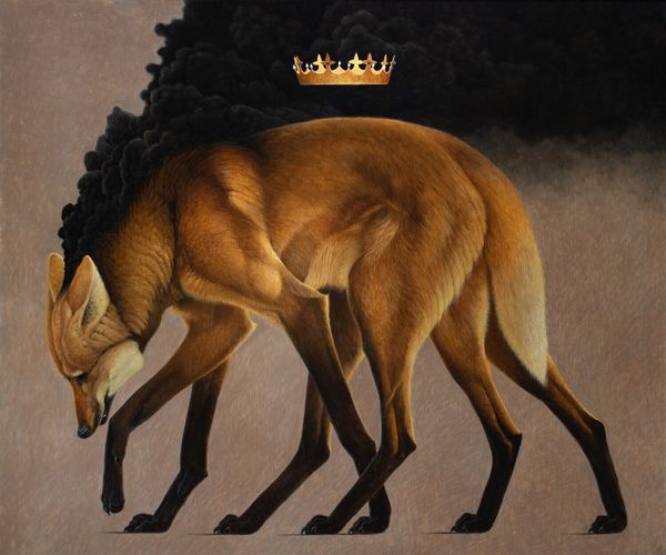 Julie Bell’s painting, "Lone Wolf," presents us with a striking image of a wolf set against a dramatic landscape, immediately evoking a sense of wilderness and solitude. The composition is carefully structured with the wolf centered, drawing our eye to its gaze, while the surrounding rocky terrain and distant mountains frame the animal. The interplay of light and shadow is particularly noteworthy. Bell uses chiaroscuro to create depth and texture, with dark, shadowed rocks contrasting against the bright, sunlit peaks in the background. This contrast not only enhances the visual drama but also underscores a thematic tension between the known and the unknown. Bell's choice of realism invites us to consider the wolf not merely as an animal, but as a symbol. The landscape, with its rugged, untouched quality, further emphasizes the theme of nature's untamed power. What do you make of how Bell invites us to interpret how nature shapes the individual? Consider, too, how Bell uses contrasts of light and shadow to create a narrative depth that goes beyond mere representation.