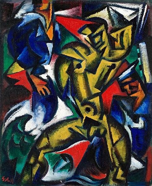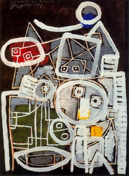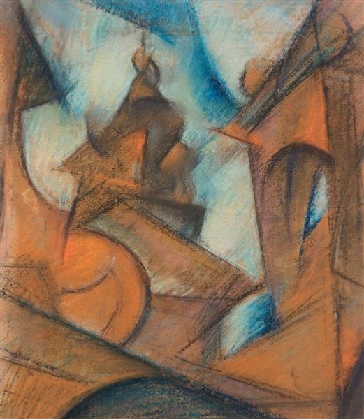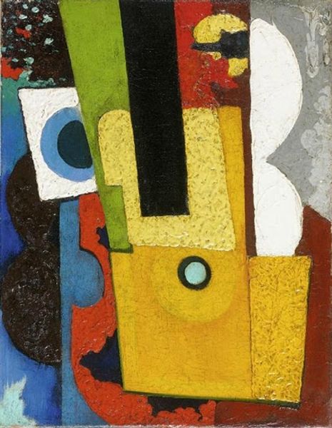 Curator: Looking at Gösta Adrian-Nilsson's "Mekanik - Sandskopa," created in 1922, what's your initial take? Editor: It’s surprisingly tactile, even just seeing it. The way the paint’s applied gives real texture, almost industrial, doesn’t it? Like rough cast iron. Curator: Absolutely. Adrian-Nilsson, often abbreviated GAN, was deeply interested in the machine age, modernism, and particularly in creating a queer aesthetic within that context. This piece reflects that intersection. Editor: The title "Sandskopa"—Sand Scoop—is interesting given that, because I initially perceived this through its form and material properties as entirely decontextualized from any labor narrative. The roughness of the paint and its muted color palette gives it a raw feel that seems so at odds with the delicate process of sand scooping. It speaks more about labor’s materiality. Curator: Precisely, it shows the tensions inherent in that period’s embrace of industrial progress alongside a fascination with traditional labor, filtered, as I said, through a specifically queer lens. You see it in the hard-edged geometry mixed with these soft, almost luminous colors. There’s a clear push and pull. Editor: How was something like this received back then? Given its obvious departures from any conventional representational imagery. Curator: Early reactions were mixed, as you might imagine. Sweden, at that time, had an interesting dynamic. While modernism was gaining traction, there was still a strong academic tradition. Works like this challenged those established norms and provoked critical debate about the role and function of art in society. Editor: I wonder how the "queer aesthetic" you mentioned plays out, especially regarding materiality and consumption. How the artist manipulated the traditional definitions. The tension between these two points feels very central here, challenging preconceived categories. Curator: It certainly does. By disrupting conventional forms and representation, GAN offered an alternative vision of modernity, questioning the very structures upon which it was built. Editor: It’s amazing how much historical weight rests on this small canvas, even now. It almost invites us to renegotiate the relationship between art, labor and the queer narrative in our own era. Curator: It does indeed! This little-known artwork challenges the definition of modernity's socio-historical context. It provides a framework that invites modern queer critique of historical artwork.