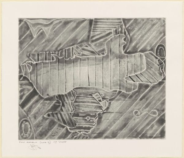 Jasper Johns created this print, Green Angel 2, using lithography, a process that relies on the interaction of grease and water. The image emerges from the flat surface of the lithographic stone or plate, built up through layers of ink. Look closely, and you’ll see the dense, almost tactile quality of the medium. Lithography allows for a remarkable range of tonal variation, evident in the subtle gradations of grey that define the composition. Johns’s work often blurs the line between reproduction and original, questioning the value we place on artistic labor. Is this print merely a copy, or does the artist's hand, through the manipulation of materials, imbue it with its own unique presence? The textures and tones achieved through the lithographic process are critical to the work's impact, challenging our assumptions about the relationship between art, labor, and value.