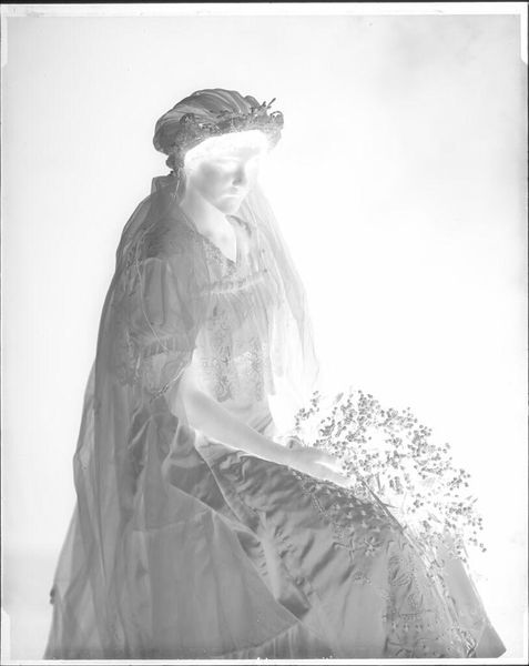 Editor: This is Luis Álvarez Roure’s painting, "Winter," created in 2019 using oil paint. It's a striking portrait with a cool, almost ethereal feel. The woman's white dress against the pale background makes her seem otherworldly. What visual symbols resonate with you in this piece? Curator: The first thing that strikes me is the dress. Its classical, almost Greco-Roman drapery, evokes a sense of timelessness, of purity even. White, of course, is culturally loaded - innocence, mourning. The artist titled it "Winter", however, adding a layer of complexity. Winter is a season associated with death, introspection, and dormancy. It presents the subject, therefore, as simultaneously innocent, pure, and as touched by a colder, more contemplative aspect of life. Does the contrast between dress and season trigger an idea for you? Editor: That’s a great observation about the symbolism of white and winter. The woman's gaze seems very direct and unflinching, it contrasts with that dormancy. Is it possible that the contrast creates an interplay between vulnerability and resilience? Curator: Precisely. Consider, also, the gestural quality of the paint application. The brushstrokes, especially in the background, suggest movement, an almost turbulent energy contained, framing a central stilled figure. This opposition speaks volumes about the inner experience during what we might call ‘winter’ times: exterior quiet may shroud inner turmoil. Editor: I hadn’t considered that turbulence. Now, seeing the background that way, the contrast creates more nuance and drama to the subject. Thanks for sharing. Curator: The dynamism behind the still. What we take from art is itself so alive. Thank you!