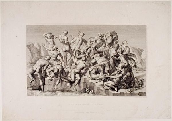 Curator: Just looking at this, the word that comes to mind is “suffocating.” It’s all so claustrophobic and desperate. Editor: This is Gérard Edelinck's "The Deluge," currently residing at the Harvard Art Museums. What strikes me is how Edelinck utilizes the classical motif of the flood, a symbolic purification. It's not just about destruction. Curator: But the people are so… active! Clambering over each other, clinging to trees. It feels less like divine cleansing and more like utter chaos. Editor: The bodies, rendered in such detail, become symbols of mortality and helplessness. And the ark in the background, it's a tiny vessel of hope amidst despair. Curator: Hope, yes, but also a premonition. It's a fascinating blend of terror and… maybe a grudging acceptance? Editor: I agree. Edelinck has really captured the duality of the narrative, the end and the beginning simultaneously. Curator: Well, now I just feel…drained. It makes you wonder, what do we hold onto when the waters rise? Editor: Perhaps, the enduring power of stories like this one, always resurfacing, reminding us of our fragility.