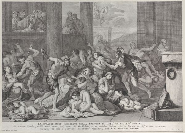 This engraving by Louis Desplaces depicts Christ healing the sick, capturing a moment rife with potent symbols. Christ, at the heart of the composition, extends his hand in a gesture of benediction, an act resonating with ancient traditions of divine touch as cure. Consider the raised hands of the supplicants; this is not merely a plea for help, but a visual echo of gestures found in pagan antiquity, where outstretched arms invoked the gods. Yet, here, the gesture finds new purpose, imbued with Christian hope. The motif of healing resurfaces throughout history, from the Egyptian goddess Sekhmet, whose touch could bring both plague and cure, to the Greek god Asclepius, whose temples were sanctuaries for the ill. Note how the emotional intensity of suffering is vividly rendered, a powerful, visceral connection between the viewer and the depicted scene. Ultimately, Desplaces' image reminds us that symbols are never static, that they continually evolve, accumulating layers of meaning as they traverse time.