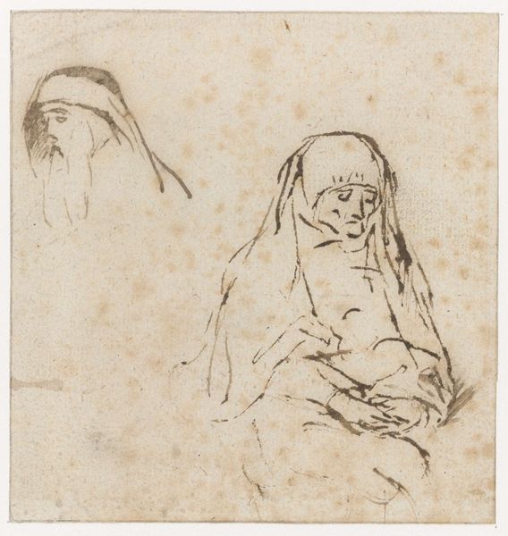 Guercino sketched in red chalk these studies for the Entombment of Christ, capturing the Madonna and other figures in deep mourning. The motif of the veiled woman, head bowed in grief, is powerfully present here. This image, like the ancient Greek depictions of mourning figures on funerary stelae, speaks to a timeless human response to loss. We see echoes of this pose across centuries, from medieval depictions of the Virgin Mary at the foot of the cross to modern photographs capturing moments of collective grief. The hand covering the face appears in countless variations, each instance carrying the weight of personal and communal sorrow. Consider how this simple gesture taps into our collective memory, triggering subconscious associations with mourning and empathy. This deeply resonant symbol transcends time and connects us to the shared human experience of grief. Its non-linear progression reminds us of the cyclical nature of sorrow and how it continues to find new expressions across history.