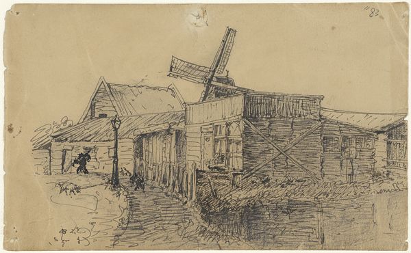 Editor: Here we have Willem Adrianus Grondhout's etching, "Molen zonder wieken in Voorburg," created sometime between 1888 and 1931. I'm immediately struck by the stillness, almost a sense of abandonment, conveyed by the dilapidated windmill. How do you interpret this work, especially considering its historical context? Curator: That's a great observation. For me, this piece resonates with themes of obsolescence and the changing landscape of Dutch society during that period. Windmills were not just practical tools but also powerful symbols of Dutch identity and ingenuity. Seeing one without sails suggests a confrontation with modernity. What happens to tradition in times of modernization and who bears the costs? Editor: That makes a lot of sense. The printmaking process itself—etching—also feels very intentional now. Do you see any feminist or other social critiques embedded in the artwork, beyond just rural change? Curator: Absolutely, if we think about the labor typically associated with these rural settings, we can question whose work is being erased when these traditional structures fall into disuse. Were these mills important social hubs, potentially also sites of female labor and community? Its dismantling suggests an economic shift impacting labor roles. Are we also looking at gendered aspects of labour being challenged or rendered invisible? Editor: That's a perspective I hadn't considered. It really shifts the reading from a simple landscape to a commentary on labor and possibly gendered roles. Curator: Exactly. Art provides space to consider these intersections, to recognize that what seems like a quaint landscape can hold layers of meaning related to gender, class, and historical transformation. Editor: I'm finding myself looking at it with fresh eyes now. Thanks for making the sociopolitical connections apparent. Curator: My pleasure. These connections remind us to stay vigilant, interrogating how art mirrors—and shapes—our understanding of the world.