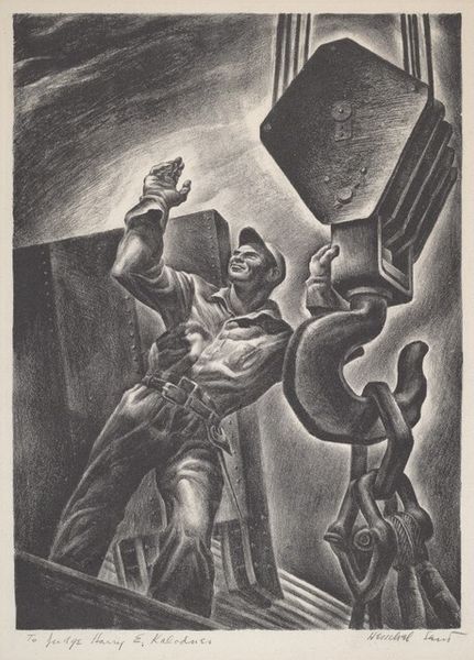 Editor: Here we have Jacob Burck’s 1934 print, “Untitled (Work or Bread),” rendered in pencil. It feels like a frozen moment of social unrest. What’s your perspective on how the medium contributes to the message here? Curator: The immediacy and accessibility of pencil—a material so readily available and often associated with sketches and preliminary studies—speak volumes. Burck isn't using rare pigments or complex techniques; he's employing a tool of the working class to depict their struggle. This aligns perfectly with the social realist movement. Notice how the very texture of the graphite creates a sense of grit and urgency. Does this resonate with the subject? Editor: Absolutely. There's no glamour, just stark reality in the shading and linework. The choice reinforces the ‘commonness’ of both the artist and the subject he is depicting. It is easy to relate to and engage with because of it. Curator: Exactly. Also, the printed element, however, does allow the drawing to be easily reproduced and shared among a wide range of people, to broaden awareness to the problem, do you think? It is a social message, created using economical means, distributed widely. What statement do you believe the artist intended to make? Editor: I guess this enables the artist’s work to have political influence to galvanize supporters in times of economic insecurity. I learned how integral materials are to interpreting intention and disseminating a statement to a greater public. Curator: I agree; it's a potent combination of material choice, production, and message designed to create social impact. These everyday resources speak volumes, reflecting not just artistic talent, but a pointed political stance.