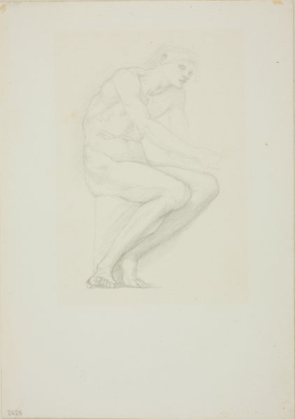 This is a pencil drawing of a male nude, made by Victor Müller, who was born in 1830. Pencil might seem like a humble material, but its capacity for subtle tonal variation made it a favorite of academic artists like Müller, who used it to plan larger paintings. Look closely, and you'll see the texture of the paper coming through the drawing, a visual reminder of the material foundation on which the image is constructed. Müller skillfully uses hatching and shading to create a sense of volume and depth, particularly in the musculature of the figure. But it is important to remember that even the most seemingly effortless sketch results from countless hours of practice – in this case, following in a long tradition of artists studying the human form. So, while this drawing may appear simple at first glance, it embodies a rich history of artistic training and a deep engagement with the materiality of both paper and pencil. It challenges us to consider the value we place on both skilled labor and the creative process.