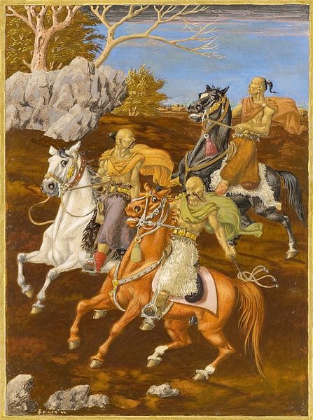 Curator: This vibrant tempera painting presents "Entry of Louis VII, King of France, and Conrad III, King of Germany into Constantinople during the Crusades, 1147-49." It is attributed to Jean Fouquet and resides in the Bibliothèque nationale de France. Editor: My initial reaction is that there is a delightful naiveté to the composition. The flattened perspective, the slightly awkward renderings of the figures and horses. I'm struck by how stylized it is, less concerned with realism and more with… well, I'm not sure yet! Curator: Indeed. What strikes me is the political weight of the imagery. The figures of Louis and Conrad become these standard-bearers of power, even when confronted with the Byzantine Empire represented here by Constantinople. The painting speaks volumes about Western perceptions of Eastern opulence and might. The entire historical backdrop of the Crusades must be considered. Editor: Symbolically, that stylized flatness contributes. Everything is laid out almost like a map, each element representing something. The fortified walls and the river denote impenetrable strength and protection. Blue flags featuring gold fleur-de-lis emerge and echo those cultural symbols. Curator: Precisely. This image isn’t just about recording an event, but about constructing and reinforcing specific narratives of the Crusades, and French and German royal power, playing into a pre-existing narrative framework for the audiences of that time. Editor: You see so many layers in this painting: It feels simultaneously self-aware and aspirational. This single scene is able to evoke an entire network of cultural biases that played into the larger Crusades efforts. What feels most contemporary is this painting's manipulation of the image in pursuit of specific symbolic weight. Curator: Well put. It prompts us to consider the ongoing legacy of this visual language of power. These tropes still echo throughout Western art today and reflect deep issues of cultural hegemony that remain pertinent to unpack in contemporary times. Editor: Absolutely. Thinking about those echoes makes experiencing this artwork relevant. Thank you.
