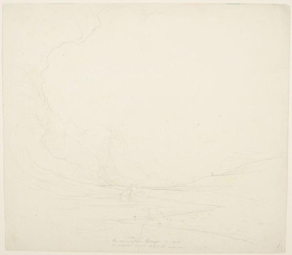 Curator: Welcome. Before us, we have Washington Allston’s "Cloud Study," a small drawing residing at the Harvard Art Museums. Editor: It’s so delicate, isn’t it? Like a whisper of a cloud, barely there on the page. It makes me think of fleeting moments, dreams almost forgotten. Curator: Allston, born in 1779, lived during a period of immense social change. His landscapes often reflected romantic ideals, but also anxieties about industrialization. Do you see any of that here? Editor: Maybe in the way the clouds seem to dissolve, like a world fading away? Or perhaps it's simply the impermanence of beauty itself. It definitely pulls at something deep inside. Curator: Indeed. Allston's cloudscapes, even these modest studies, invite us to consider the broader narratives surrounding nature and its representation. Editor: It’s funny, such a simple sketch can hold so much feeling. I’m glad I stopped to look. Curator: Precisely. It's a reminder that art can be found in the quietest of moments.