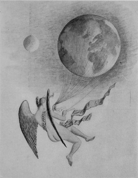 Wilhelm Kotarbinski's drawing, 'Shooting Star', presents a dreamlike vision rendered in soft monochromatic tones, evoking a sense of ethereal melancholy. A reclining female figure, seemingly composed of light, descends from the upper reaches of the composition. The linear quality of the drawing invites us to consider the structure of symbolic forms that shape our understanding. The shooting star, traditionally a symbol of fleeting beauty, becomes intertwined with the reclining figure, blurring the boundaries between celestial and earthly realms. The carefully modulated tonal range—from the inky blacks of the sky to the luminous whites of the figure—creates a spatial ambiguity. It challenges our perception, destabilizing fixed meanings associated with these symbols. The artist uses formal elements to suggest a world where categories are fluid. Here, the 'shooting star' becomes a site of ongoing interpretation, reflecting our desires and fears onto the cosmos.