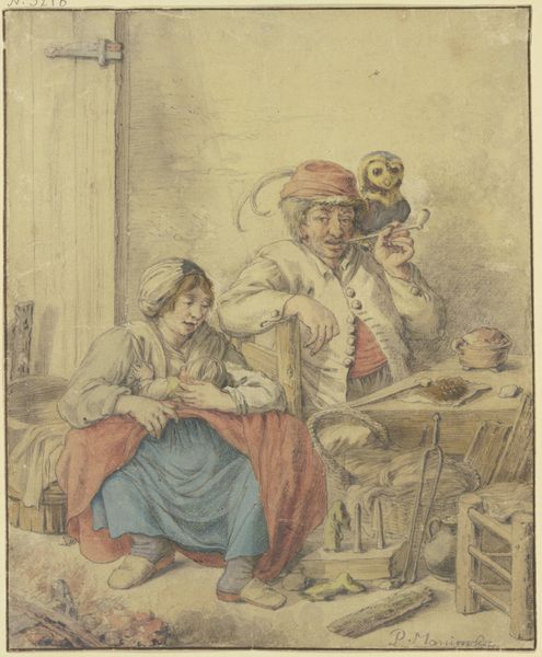Willem Joseph Laquy rendered this image of chequerboard players in the 18th century with watercolor and gouache on paper. These are very traditional art materials, yet the scene depicted offers a glimpse into the everyday life and social dynamics of the time. The way Laquy built up the image, layer by layer, contributes to the overall effect of a dimly lit, intimate gathering. The rough paper grain shows through, adding texture to the clothing and faces, while the gouache provides opacity, giving weight to the figures. Look closely at the faces. There is a sense of observation and an understanding of human nature, elevating it beyond a mere genre scene. The setting might be a public house or tavern, places where people from different walks of life could come together. This scene hints at the role of leisure and social interaction in a society undergoing significant economic and social changes. Considering Laquy’s choice of materials and the meticulous manner of his execution, we gain insight into his artistic intentions. He captures a specific moment, but also invites reflection on the social fabric of his time.