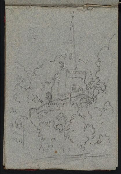 Curator: This is J.M.W. Turner's "Tewkesbury, Gloucestershire," a delicate graphite drawing. It's part of the Harvard Art Museums collection. Editor: It feels ghostly, like a memory surfacing. The architecture dominates, but the sketchy foliage softens its imposing nature. Curator: Turner was fascinated by architecture and how it existed within a landscape. This sketch feels like a preparatory study. Editor: It makes me consider the legacy of religious structures like this one. Who built it? Who was excluded? The architecture conceals so much. Curator: Perhaps. It's a beautiful balance, though, isn't it? The fragility of the line work hints at the ephemeral nature of even the most solid-seeming things. Editor: Definitely. I wonder what his final intention was for this sketch. There's something melancholic but also deeply insightful in the sketch. Curator: Absolutely, a contemplative dance between permanence and fleeting impressions. Editor: Yes, a stark reminder of power dynamics embedded into the land.