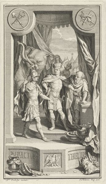 Curator: Here we have a drawing attributed to Jean Jouvenet, tentatively titled "Biblical Scene." It's currently held here at the Harvard Art Museums. Editor: Striking! My first thought is theatrical staging; it feels like a dramatic tableau frozen in ink, with the players caught mid-scene. Curator: Yes, Jouvenet captured a certain tension. Look at the costuming—the bishop’s mitre, the soldier’s plumed helmet—each figure meticulously rendered through layering washes of ink to create a sense of depth and texture. Editor: The material heft of those garments…and the drawing itself, made with iron gall ink, likely produced from tannin and iron salts. The labor in creating those inks and then applying them with such deliberate strokes is worth noting. Curator: It does make you wonder what story Jouvenet intended to convey, doesn't it? Editor: I'm less interested in the narrative, and more in the historical materiality… the craft and consumption in early modern Europe. Curator: Perhaps, but the story it hints at still reverberates, doesn't it? A powerful scene rendered with delicate ink. Editor: Precisely. It's the ink's history that speaks volumes.