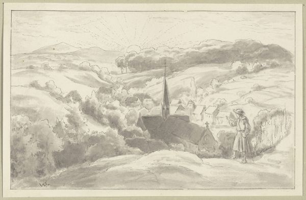 Karl Friedrich Harveng created this drawing, Schwarzwälder Schuljugend bei heraufziehendem Gewitter, using graphite or charcoal on paper. The choice of such simple materials emphasizes the natural scene depicted. Look closely, and you’ll see the artist's hand in the smudged shading, creating a sense of atmospheric pressure before the storm. These gradations convey the weight of the impending weather, and the vulnerability of the children depicted. The drawing captures a moment in time, and also offers a glimpse into 19th-century rural life, where people were much more closely exposed to the elements. Graphite is not an inherently precious material, but it’s capable of capturing incredible nuances. The way Harveng deploys it reminds us that artistry isn't always about using costly materials; it's about vision, skill, and sensitivity.