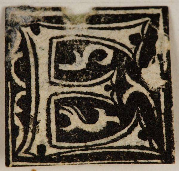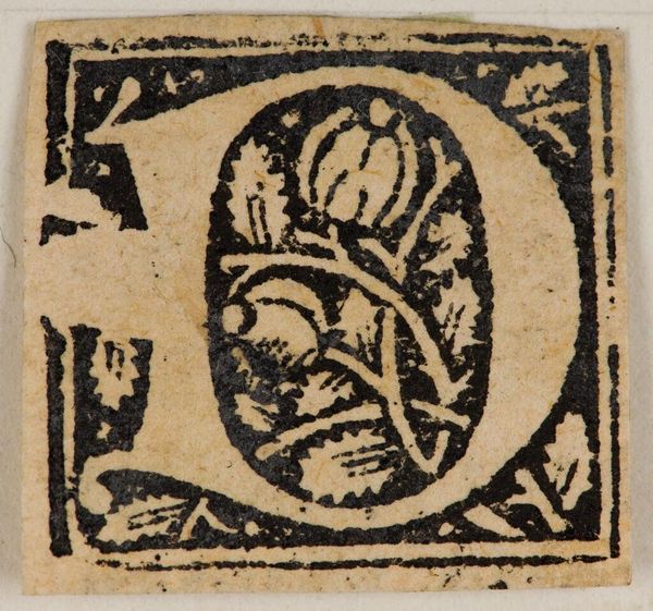 Curator: This striking "Letter S" print from the Harvard Art Museums, created by an anonymous artist, presents a fascinating point of entry into the world of early typography and graphic design. It's so bold. Editor: It feels almost like a relic—rough-hewn edges, thick black ink. It projects an aura of profound simplicity, wouldn't you agree? Curator: Indeed. The letter itself, rendered in a bold, almost serpentine form, is flanked by floral motifs. Notice how these elements aren't merely decorative; they seem to imbue the letter with connotations of growth and vitality, mirroring the very blossoming of literacy and communication within society. Editor: I hadn’t thought of that connection! I was considering this little print in the context of early publishing, how something like this democratized knowledge. Curator: Precisely. It reminds us that even something as seemingly simple as a letterform carries a profound cultural and historical weight. Editor: Yes, seeing that interplay makes me appreciate how accessible art can still make powerful statements.