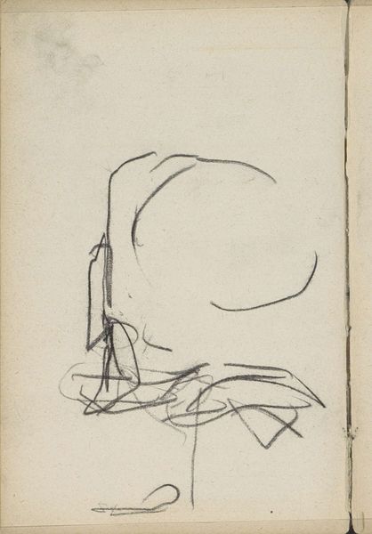 Curator: Looking at this wispy sketch by George Hendrik Breitner, called "Landschap met twee figuren en een paard" – or "Landscape with two figures and a horse" – I'm struck by its quiet intimacy. Breitner rendered it in pencil somewhere between 1889 and 1904. It almost feels like peeking into his personal sketchbook. What is your first reaction to this image? Editor: Initially, I see a kind of fragmented world. The figures are only suggested. There's a dreamlike quality to the work, it looks ephemeral, almost vanishing, a ghost of a landscape, a mere collection of suggestive forms that seem to barely occupy the page. Curator: Precisely. Considering Breitner’s wider body of work, known for capturing Amsterdam's bustling city life and the working class, this sketch stands in stark contrast. It begs the question: What space did the Dutch countryside occupy in his mind? Were the pastoral and working classes fundamentally different? Why did Breitner, entrenched in capturing urban scenes, decide to capture it? I read this as an insight into Breitner’s commentary on urban fatigue that can be projected through this image. Editor: It is interesting how it contrasts with his other artworks. The symbols he uses in those images seem so much clearer. In his paintings of Amsterdam, we see a recurring motif of women dressed in somber attire in very direct scenes, emphasizing urban isolation and routine. Yet here, the symbols are so much vaguer and feel much less resolved; figures almost fading into the landscape itself, perhaps a feeling of interconnectedness. Is it a different story he’s trying to tell us, a rejection of the rigidity of the urban lifestyle in favor of something freer and more interconnected with the earth? Or is it that he feels no personal attachment with his figures that the symbolism wanes? Curator: That's compelling. I would suggest he makes no claims towards his connection with them as opposed to a rejection. Perhaps this form reflects the historical relationship with land at the time. In Breitner's era, the Dutch landscape was increasingly becoming politicized. Farmers rights were gaining national traction through publications that promoted equality and fair working standards in an age that was defined by inequality and corruption. Through this artwork, could he be documenting it without engaging in any activism in order to avoid persecution? Is it a safe commentary, to both comment, and stay out of the conversation, with art? Editor: It would not be out of character. This sketch then carries multiple interpretations as we can view this is a reflection of an evolving societal relationship between figures and landscapes with symbolic overtones that remain elusive even for us today. I see an interesting visual paradox, Breitner's lines hinting at broader truths. Curator: It certainly gives you food for thought; Thank you for unpacking that together, offering further nuance to the landscape.
