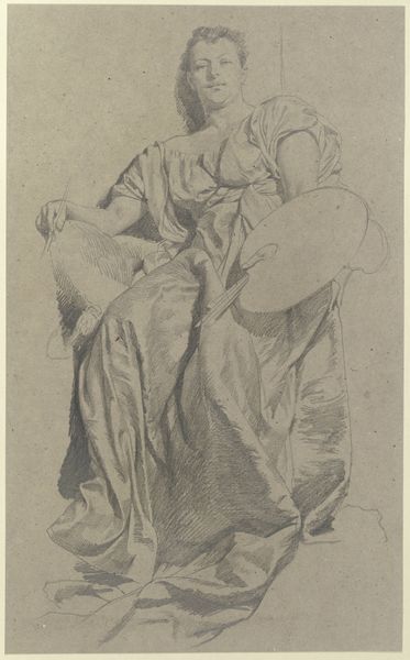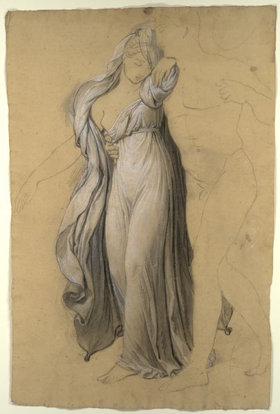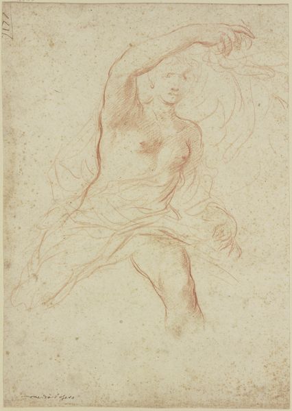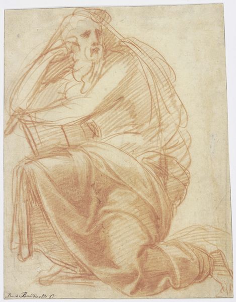 Carlo Maratti rendered this drawing of the Madonna making a gesture of intercession with red chalk. Note how the red chalk both defines and softens the figure. It gives structure to the folds of her drapery while simultaneously rendering her form with a gentle, almost ethereal quality. The composition guides your eye upward, beginning with the complex layering of her hands and robes and rising to her face, which is tilted towards the heavens. This upward movement suggests a visual echo of intercession, reaching towards the divine. Maratti uses line and shadow to create a sense of depth. This interplay suggests a world of complex meaning, a world in which we must constantly interpret the signs around us. The drawing then is not just a devotional image, but an invitation to engage with a deeper, more complex understanding of faith and representation.