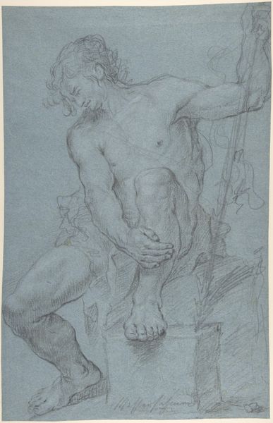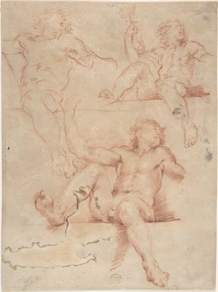 Editor: Here we have "Two Putti," a drawing made with pencil and chalk on paper by Peter Cornelius. It feels unfinished, almost like a sketch. I'm curious, what do you see in this piece beyond its obvious subject matter? Curator: For me, the fascination lies in the artist's hand, in the very process of creation evident here. Look closely at the laid paper, its texture made visible beneath the chalk and pencil. Consider Cornelius’s material decisions: why choose these tools, this support? The softness of chalk allows for modeling the delicate flesh of the putti, while the pencil provides the underlying structure. Editor: So, you’re focusing less on the idealised figures and more on… the materials themselves? Curator: Precisely. Consider the historical context: Artists during the Renaissance and later relied heavily on preparatory drawings. These weren't meant for display as "art" in the modern sense but were utilitarian objects, stepping stones toward larger paintings or sculptures. The labor involved, the sheer quantity of drawings produced by masters and their workshops – that’s significant. What does it mean when a working drawing like this becomes a valuable object in its own right, divorced from its original purpose? Editor: That’s a really different way of looking at it. It almost elevates the craft aspect, the "making of," over the finished product. Curator: Exactly! We can ask, what were the social hierarchies inherent in workshop production? Who prepared the materials? Who executed the initial sketches? Whose vision ultimately prevailed? Editor: So by looking at the materiality, we're also uncovering hidden narratives about labor and the artistic process. Curator: Absolutely. It transforms what appears to be a simple sketch into a complex cultural artifact. Editor: I never would have thought about all that just looking at it initially, it's amazing!
