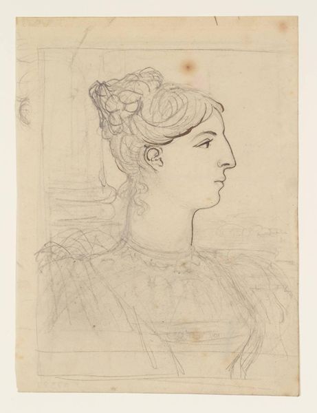 Here we have a pencil drawing by John Flaxman titled "Head of a Woman Looking Down (Theresa Turner?)". Its focus is on the head of a woman portrayed with a gaze directed downwards. Flaxman masterfully uses line to delineate form and create a sense of depth, notice the soft, delicate strokes that define the contours of her face and the intricate details of her hairstyle, with curly tendrils framing her face. The composition is tightly cropped, drawing our attention to the woman's introspective expression. The absence of color directs our gaze to the tonal variations achieved through shading. The downward gaze evokes a sense of melancholy or contemplation. Flaxman's handling of line and form creates a study in understated elegance and emotional resonance. The graphic quality of the pencil work enhances the drawing's immediacy and intimacy. The visible strokes and their arrangement contribute to the overall aesthetic and conceptual experience of the artwork.