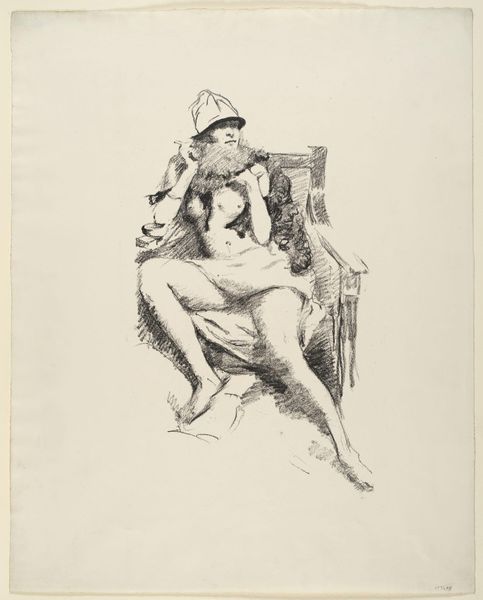 Wilhelm Marstrand made this drawing of an Italian boy with a basket using graphite on paper. Marstrand employs traditional artist's materials to depict what was, in his time, an everyday scene. The material influence on the drawing is evident in the varying line weights and the delicate shading that models the boy's form, the texture of his clothing, and the woven basket. You can see that Marstrand has worked with a dry medium that allows for a high level of control and detail. The basket, expertly woven by an anonymous craftsperson, probably represents the boy's contribution to his family's income. In this respect, the drawing is interesting, as it is made by an artist who is from a different class than the boy he depicts. The drawing reminds us that all art is made, one way or another, from something real. By considering both the material and the social context of this work, we can gain a deeper understanding of its meaning and its relationship to the world around it.