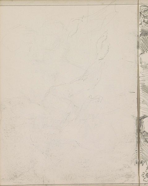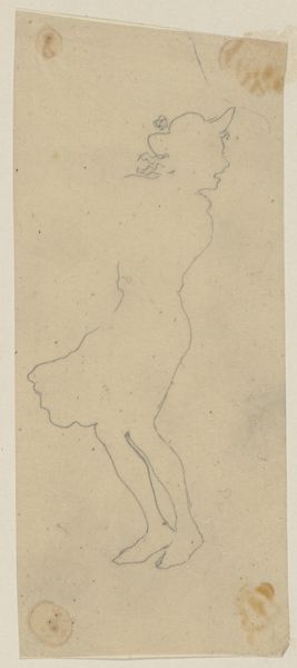 Curator: Welcome. Before us is "Lathyrus," a pencil drawing made sometime between 1873 and 1917 by the Dutch artist, Theo van Hoytema. Editor: It’s delicate, almost ethereal. The blue pencil lines are so light against the paper that it feels more like a memory of a sweet pea than a representation. There is a distinct air of wistful longing that comes from its lightness. Curator: Hoytema was quite involved with the Hague School, and it’s clear to see that landscape influence in his meticulous detail in the natural world here. But you are right, he does something special with this one. Though classified as realism, it moves into the poetic and emotionally evocative. Editor: The single sweet pea, rendered so delicately, really focuses the attention. One almost feels the plant’s vulnerability. Knowing the time period in which this work was crafted, it encourages questions. What’s happening in Dutch society that leads artists towards themes of fragile beauty? How does the role of the natural world transform through industrialization? Curator: That's interesting to consider. I wonder about Hoytema's intention during the creative process itself. The style reflects his social milieu but what internal dialogues shaped it? In the Netherlands around the turn of the century, art was grappling with the rapid changes brought by modernization. The light and rendering technique, however, could also be referencing Japan and their printing traditions. There was also the burgeoning movement toward spiritualism in response to what many saw as materialism threatening society, the tenuous drawing may have reflected a reaching beyond. Editor: I agree. The transparency, the almost-not-there quality makes one ponder what we choose to see and preserve, in art, in nature, in history. What statements are we making with those artistic choices? Curator: Exactly. Seeing this at the Rijksmuseum also adds another layer, doesn’t it? The institutional validation, if you will, of a drawing that seems to defy the monumental and instead, embraces the ephemeral. Editor: It forces us to question why some art is elevated. Hopefully pieces like this lead to new and continued conversations that re-imagine artistic canons! Curator: Precisely. "Lathyrus," in its quiet way, whispers about larger histories, and perhaps our own potential to observe the quieter beauties that sustain us. Editor: Agreed, it's an invitation to observe more, to listen more deeply, to the quieter voices both in the art world and our world in general.