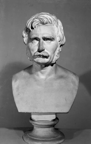 Editor: This is a marble bust of Generalmajor J.S. Fibiger, created in 1862 by H.W. Bissen. It feels very stoic and almost severe, particularly with the sharp lines of the face. What symbols or cultural context can you read in this piece? Curator: The moustache is a very strong symbolic element of the period, isn’t it? Its imposing and theatrical presence can signal authority, status, a military background or an ambition to cultivate respect. How does the marble medium amplify this effect? Editor: It almost feels like he's being immortalized, doesn't it? The permanence of marble paired with his, let's say, *striking* moustache gives off an air of someone who wants to be remembered a certain way. Curator: Precisely. Marble, favored by the Romans and revived in the neoclassical era, suggests an idealised or heroic permanence. And considering his military rank, this enduring image could reinforce ideas of national strength or societal order. Think about the stories his face might tell; are there other symbols contributing to those stories? Editor: Well, I'm also seeing a bit of wear and tear, maybe some slight discoloration to the stone. Does that play into the symbolism, perhaps pointing towards mortality or the passage of time, despite the intended permanence? Curator: An astute observation. The imperfection contrasts sharply with the ambition of idealization, thus opening up a tension between intended legacy and the reality of existence, making the work even more compelling. So what stories resonate with you now that our time together is coming to an end? Editor: Seeing past the initial stoicism to this push-and-pull between the ideal and the real really changed my perspective! I learned to seek the story within the symbols and the material itself, a story beyond a static pose and a memorable mustache. Curator: And that story continues to be shaped with each viewing and conversation, revealing deeper insights into not only the artwork, but ourselves.