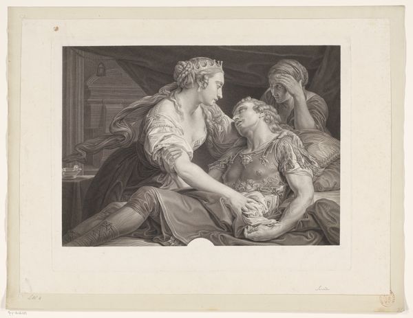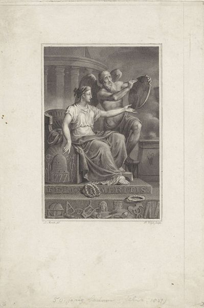 This stipple engraving of ‘The Meeting of Ulysses and Penelope’ was created by Francesco Bartolozzi. Note how the composition is framed within an oval, focusing our gaze on the reunion of Ulysses and Penelope. Bartolozzi masterfully uses the stipple technique to create soft tonal gradations, enhancing the emotional depth of the scene. The texture of the figures' clothing contrasts with the smooth skin, creating a tactile sense of the artwork. The gaze is led from the embrace of Ulysses and Penelope, up the spear to Athena seated above. This may suggest an element of divine oversight or perhaps intervention in human affairs. The lines and curves of the bodies express a sense of longing and relief. This intimate moment becomes part of a larger narrative about homecoming, recognition, and the reaffirmation of social and divine order, inviting endless interpretations.