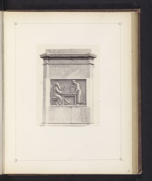 Curator: Here we have an image from before 1894 depicting a pillar with a symbol for justice. It stands at the front of the Palace of Justice in Brussels, Belgium. Editor: That is solid! It gives a very solemn, almost severe impression. The detail is amazing - very finely made. The weightiness of the pillar is something else, it gives the impression of something quite heavy-handed. Curator: Yes, the anonymous artist clearly wanted to emphasize the immutable nature of justice through neoclassical form. This is a print, one could see such neoclassical images becoming the emblems of the court system. Academic art became closely intertwined with legal and political authority. Editor: Totally - all those clean lines and geometric details add to the impression. It feels cold, and somehow dehumanizing. Justice reduced to pure rationality. Do you think anyone considered, perhaps, that justice should feel warmer or have heart? Curator: Well, within Neoclassicism, feeling takes a backseat to reason and order, a value which obviously suited those keen to promote rationality in the administration of law and, therefore, society. The artist here really emphasises the idea of justice as an impersonal and enduring principle. I would consider how new technologies such as architectural prints further codified these images. Editor: That's an interesting idea. Thinking about the cultural message behind this. Does the Justice that we can grasp by pure rationality reflect real-life justice? It brings to mind similar architectural patterns, repeated across other halls and columns. Cold halls… and so many echoes. I wonder what it felt like to visit. Curator: This representation highlights the historical aspirations of the justice system. This image underscores how these architectural elements were essential in conveying institutional strength and authority. Editor: Yeah, the image has gotten me thinking now about where we place our trust. We're leaving the digital and moving into something solid. Stone or a drawing of stone… Where is truth to be found? Curator: Well, that gives us a lot to contemplate about justice. Thanks for sharing those wonderful insights.