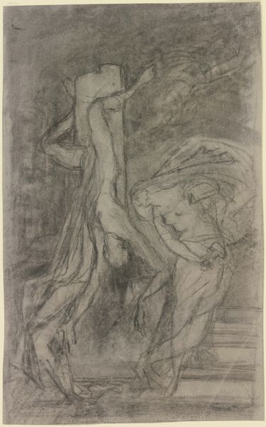 This lithograph, titled "Serbia: Sister Anne," was created by Théophile Alexandre Steinlen. It is made using a stone, a grease-based crayon, and a complex chemical process to transfer an image onto paper. The rough, grainy texture of the lithograph lends an air of immediacy to the scene. You see a woman holding a child, standing at the edge of a cliff, and a man lying at her feet. The artist skillfully used the lithographic crayon to create a sense of depth and shadow. The drawing's marks are evocative of form and weight, yet also reveal the artist's hand. Steinlen was deeply committed to social justice, and lithography allowed him to reach a wide audience through newspapers and journals. In this image, the act of making is tied to the broader social issues of labor, politics, and consumption. The work becomes a powerful statement about the human cost of war. By considering the materials, the making, and the context, we begin to understand the full meaning of this artwork.