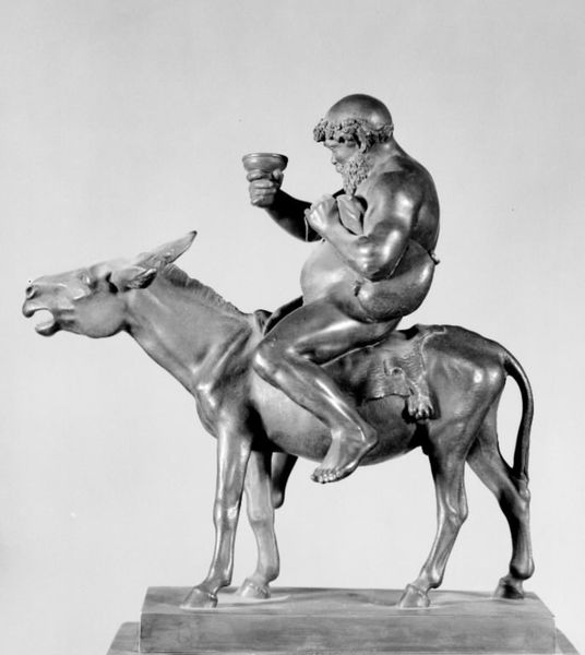 Curator: Here we have Giambologna’s "The Centaur Nessus and Deianeira," a bronze relief thought to be cast sometime between 1544 and 1608. It’s a whirlwind of emotion and tension, don’t you think? Editor: Indeed! The figures' dynamic arrangement certainly draws the eye—an ascending, almost frenzied composition that plays across the relief surface. What is the historical context? Curator: Well, it depicts a scene from classical mythology. Nessus, the centaur, is abducting Deianeira, Hercules’ wife. See how her arm is raised in desperation, practically pleading for help? Giambologna really captures that raw fear. And that centaur's face, somewhere between grimace and determined lust. Editor: The Mannerist style is clearly at play here, evidenced through the deliberate distortion and exaggeration of anatomical forms—a signature style used for heightening the drama and emotional intensity of the narrative. How would you articulate its structure? Curator: Giambologna, cheeky genius that he was, uses the bronze to its full potential. The muscles of Nessus are so clearly defined, almost like they're flexing right at you. And that glossy finish…gives it such a vivid, almost unsettling realism, don’t you feel? It is impossible not to wince at her torment as the Centaur struggles forward on that little, crowded platform of horrors. Editor: Absolutely, and consider how the relief structure here actually flattens and accentuates the bodily entanglement. The details, such as the grimacing masks adorning the base, amplify the overall sense of grotesque violence and amplify the disquieting themes already presented above them. The formal aspects are very pronounced here and build an experience for the viewer. Curator: I keep being drawn back to the woman and to the desperation with which she has attempted to escape the depraved Centaur's grasp. As a student, you know, I attempted to translate this raw story into a drawing once; needless to say, I aged about ten years. I never looked at mythology the same way again. Editor: Precisely, an emotional investment in this artwork certainly enriches a viewer's reception; by studying its composition, forms, and inherent tensions, we begin to engage more deeply. The emotional crescendo translates into profound and lingering observation, doesn’t it? Curator: Absolutely. Art that truly challenges us stays with us, shapes us, makes us question… This relief by Giambologna serves up all of this and a healthy dose of drama, don’t you agree? Editor: Most assuredly; it will stay with me for some time!
